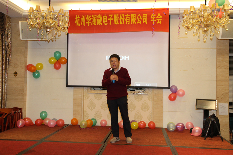 2017年1月6日晚,杭州華瀾微電子股份有限公司2017年年會在蕭山隆爵大酒店成功舉辦。到場的領(lǐng)導(dǎo)和嘉賓有華瀾微電子首席科學(xué)家、著名半導(dǎo)體專家、國家科技進步一等獎獲得者、參與研發(fā)我國第一顆晶體管的鄧先燦教授,寧波賽伯樂甬科股權(quán)投資合伙企業(yè)(有限合伙)的黃昕執(zhí)行總裁和銀江科技集團有限公司的唐通投資總監(jiān)?,F(xiàn)場群英閃耀,熱鬧非凡,華瀾微全體員工歡聚一堂,共同分享這個喜慶的時刻。在歡快的音樂聲和主持人精彩的開場白中,華瀾微2017年年會正式開始。